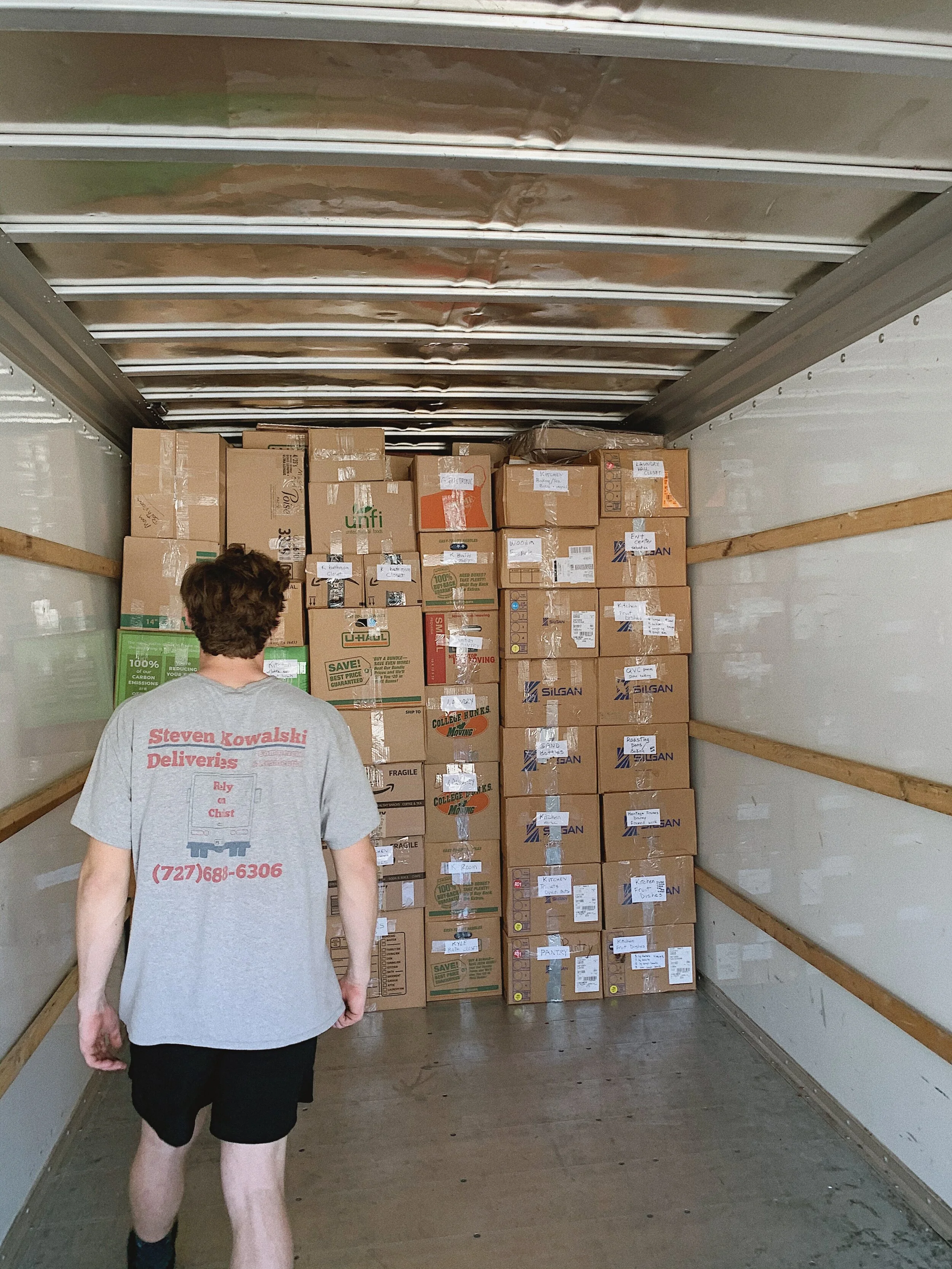 Boxes are also designed to be stackable. When boxes are stacked correctly, they create a stable and secure base that can support other boxes and items, without risking damage to the contents inside. This allows our movers to pack the truck effectively, reducing the risk of your items shifting during transit. The more we can minimize movement, the easier it is to ensure that everything arrives at your new home in the same condition it was packed.